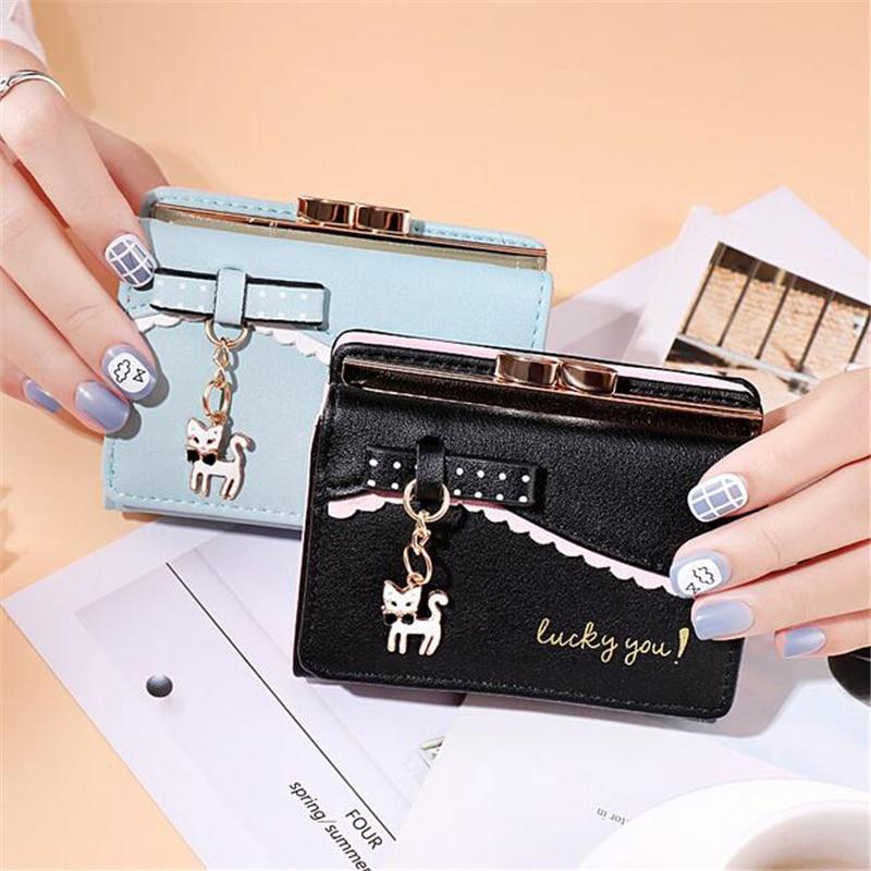 Маленький кошелек, женский кошелек с застежкой для карт, женский личи, милый кот, сумка для монет, кошелек для денег, кошельки-клатчи