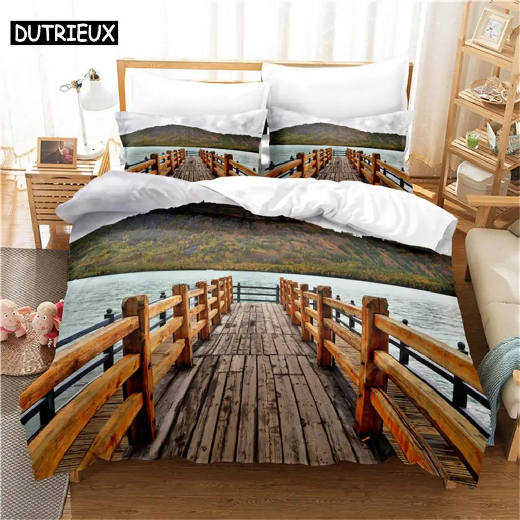 Маленький мост, 3 шт., комплекты постельного белья, 3D цифровая печать, комплект пододеяльников на заказ, домашнее одеяло королевы, наволочка