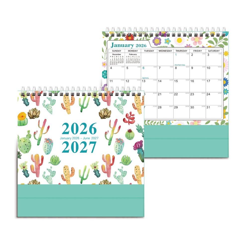 Маленький настольный планер на 2026 год Январь 2026-июнь 2027 Ежемесячный календарь-сетка Креативный настольный календарь Cactus