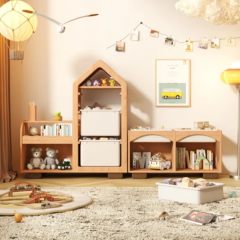 Маленький поезд Шкаф для хранения из цельного дерева Шкафчик Бесплатная комбинация Открытая сортировка игрушек Палатка для дома на дереве Полка