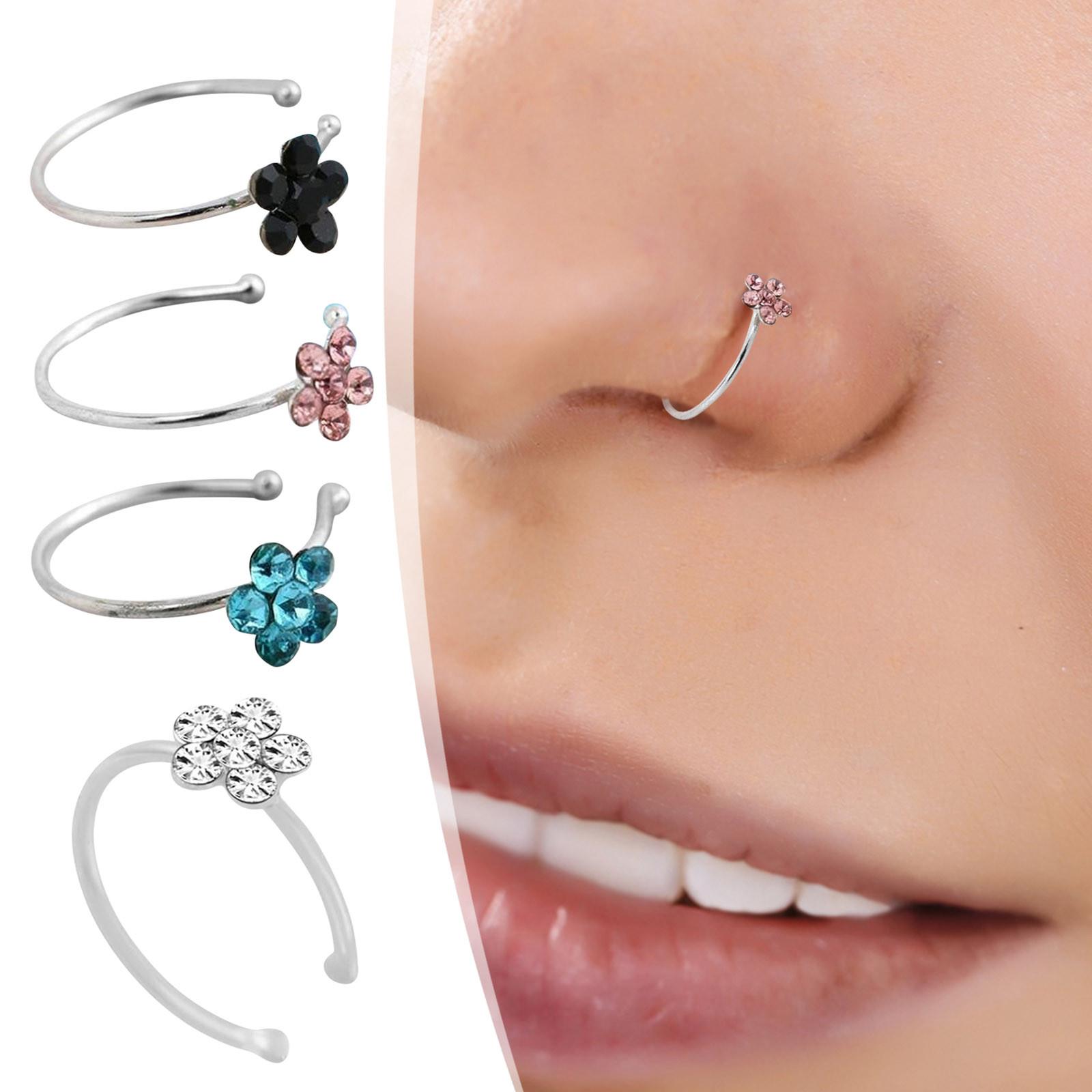 Маленький тонкий цветок, прозрачное хрустальное кольцо в носу, обруч-шпилька, блестящее хрустальное кольцо в носу