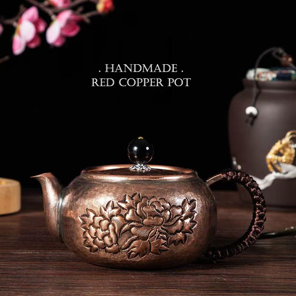 Маленький чайник из чистой меди, Чайник из красной меди ручной ковки, Здоровый чайник для кипячения, Чайный сервиз Кунг-фу для дома