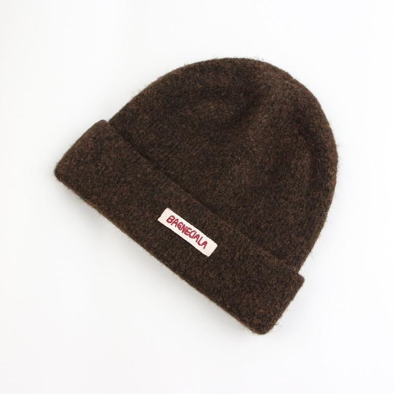 Маленькое лицо теплая шерстяная шапка женская прилив осень и зима универсальная наклейка вязаная шапка холодная шапка мужская темно-коричневого