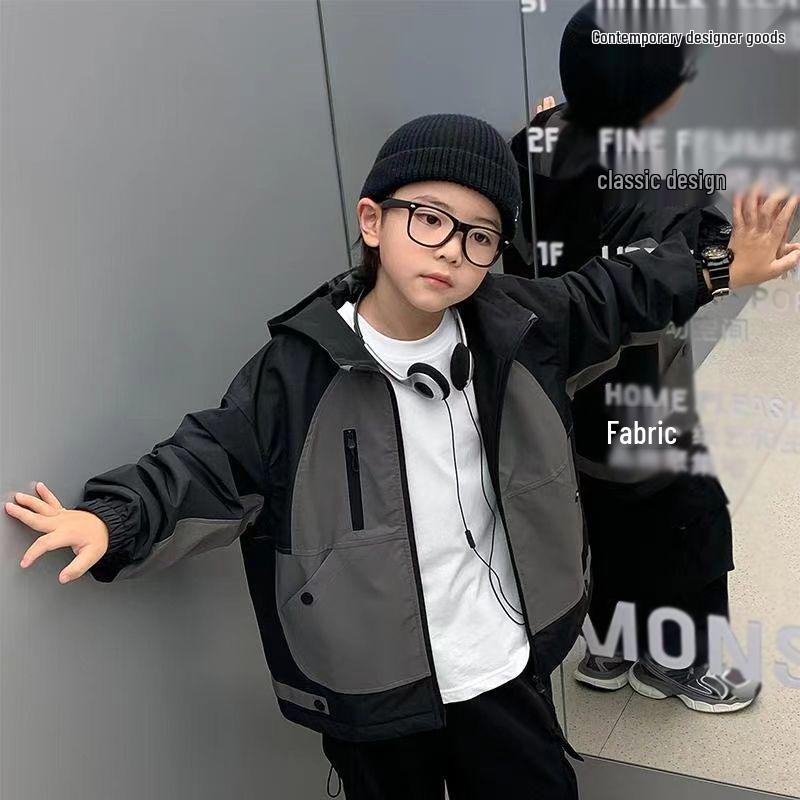 Мальчиковая ветровка с капюшоном: 2025 Весна/Осень Детская Повседневная Верхняя Одежда - Стильная и Красивая. 100 cm