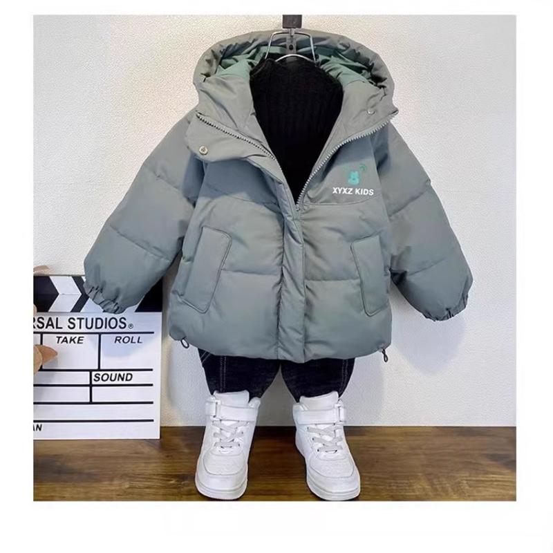 Мальчиковая куртка с пуховым наполнителем согревает зимой, зимняя одежда для маленьких мальчиков, модная куртка с толстым наполнителем 100 серый