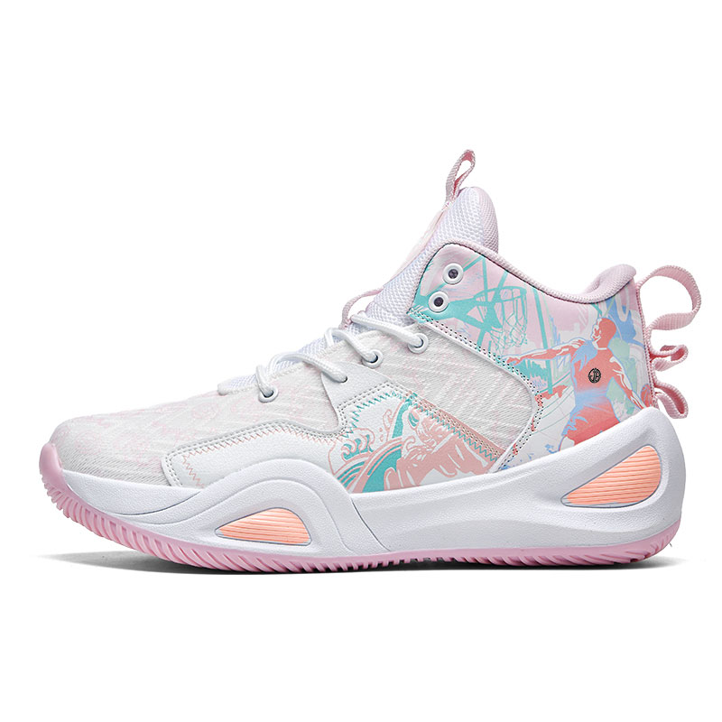 Противоскользящие и дышащие детские баскетбольные кроссовки среднего размера для подростков Yi Jiabao, белый/розовый