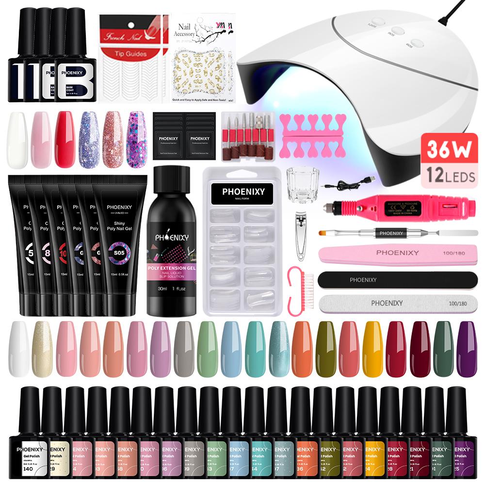 Маникюрный набор PHOENIXY, 20 цветов, гель-лак для ногтей с гелем для наращивания ногтей, 36 Вт, лампа для отверждения ногтей, дрель для ногтей, инструменты для ногтей, художественные наборы