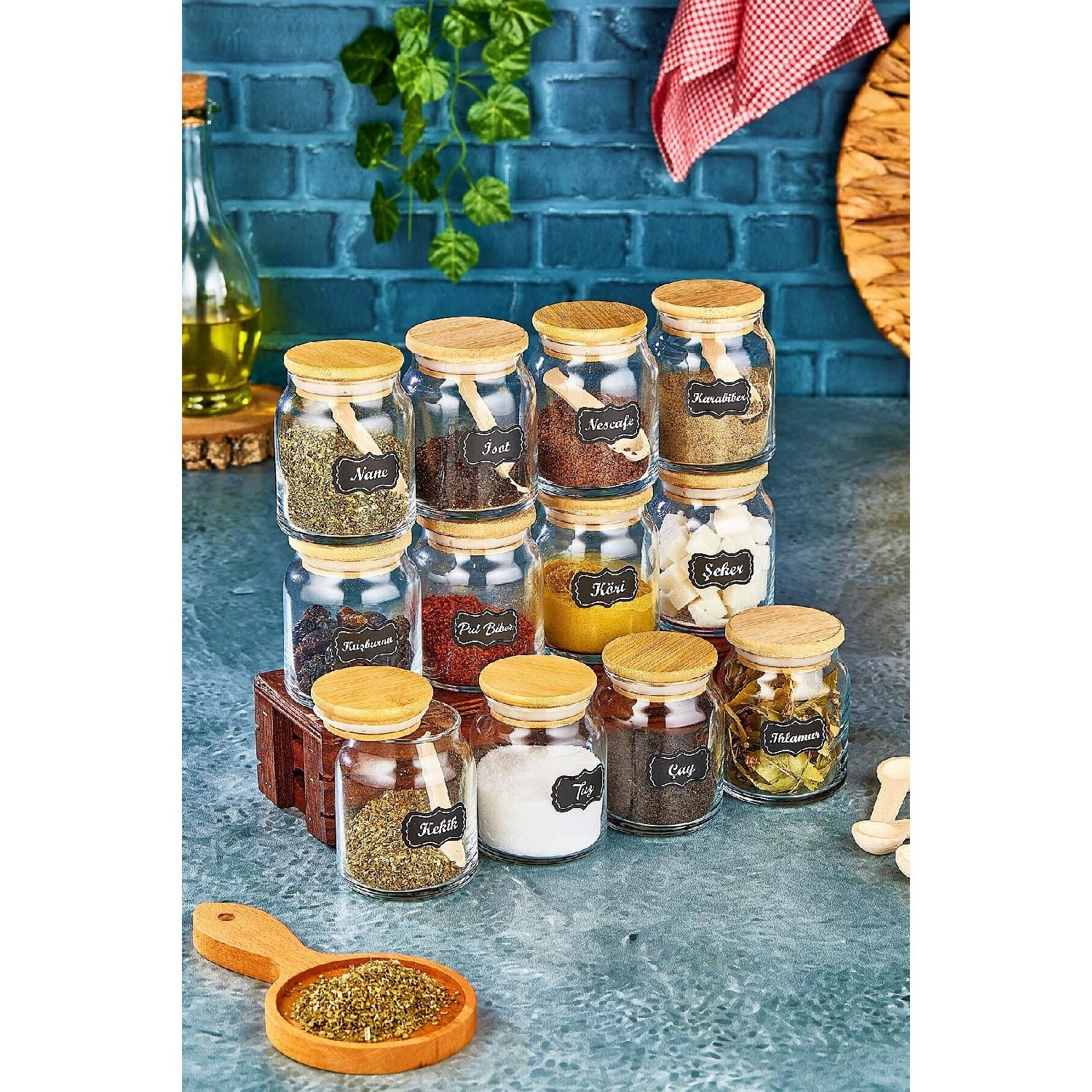 Маркированные 300 мл, 12 баночек и 12 мини-ложек для специй — набор специй из 24 штук белый