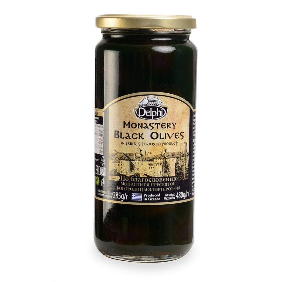 Маслины Delphi с косточкой в рассоле Монастырские 480 г, Греция