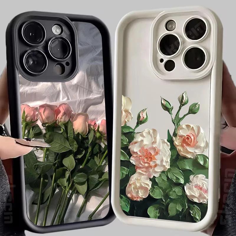 Масляная живопись Белый цветок розы Силиконовый чехол для телефона для iPhone 15 14 13 12 11 Pro Max XS X XR 7 8 Plus Ударопрочная мягкая крышка iPhone 15