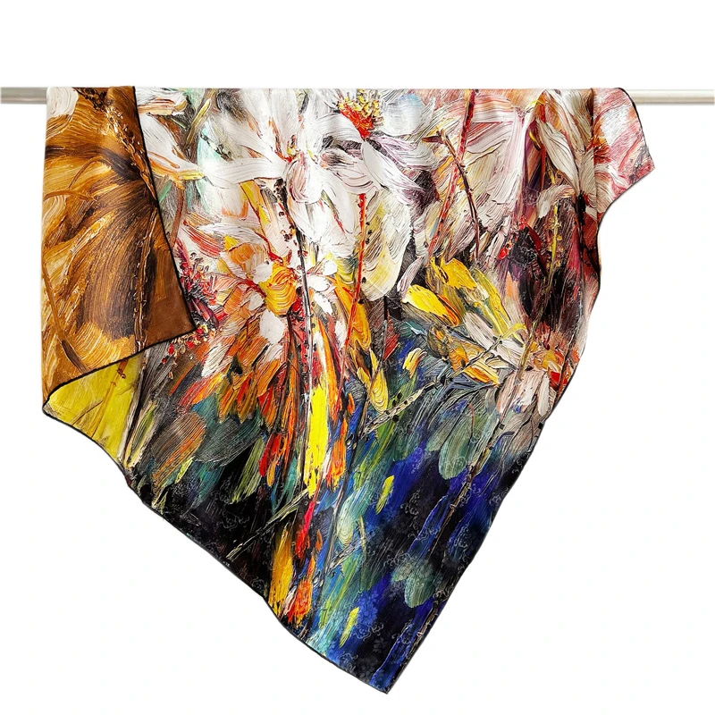 Масляная живопись, цветы, двусторонняя разная Цветовая печать, большой размер, женские шали из 100% чистого шелка, Женская дорожная шалетка, новинка 2023
