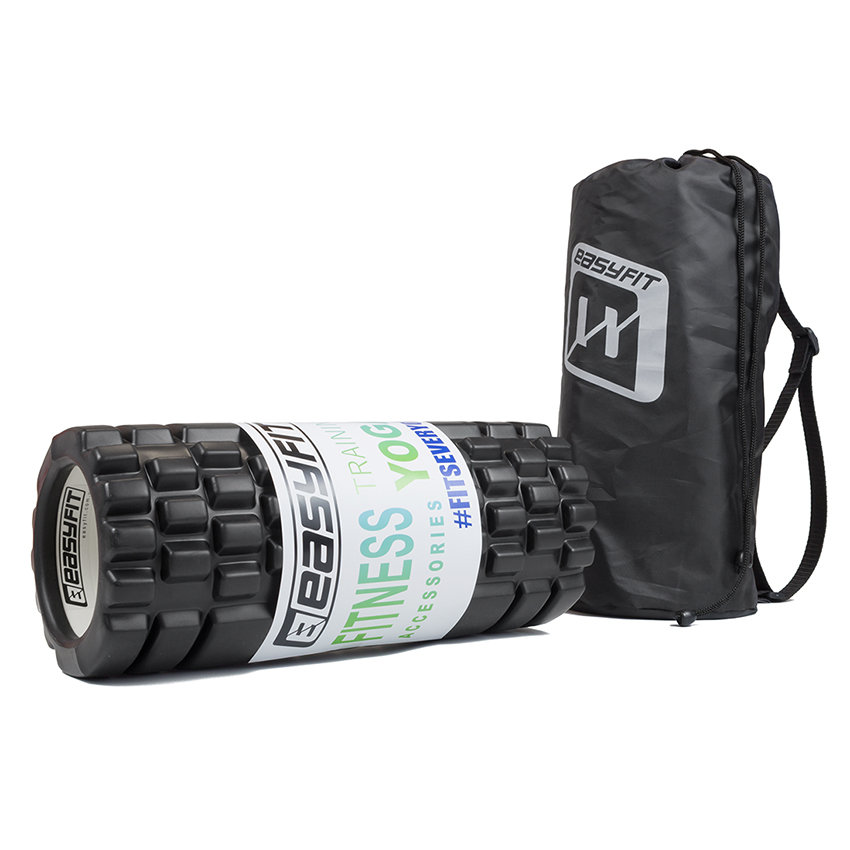 Массажный ролик EasyFit Grid Roller EF11 33 см черный в чехле (роллер, валик, цилиндр)