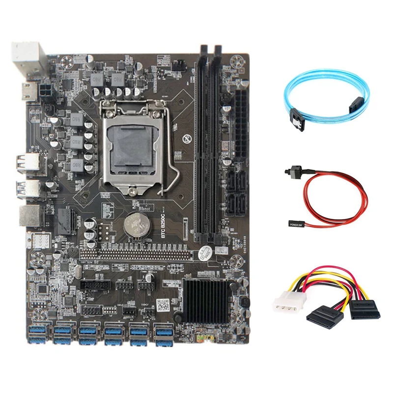 Материнская плата B250C для майнинга + кабель с последовательным портом SATA3.0 + кабель 4-контактный для SATA + кабель переключателя 12 PCIE на USB3.0 слот ...