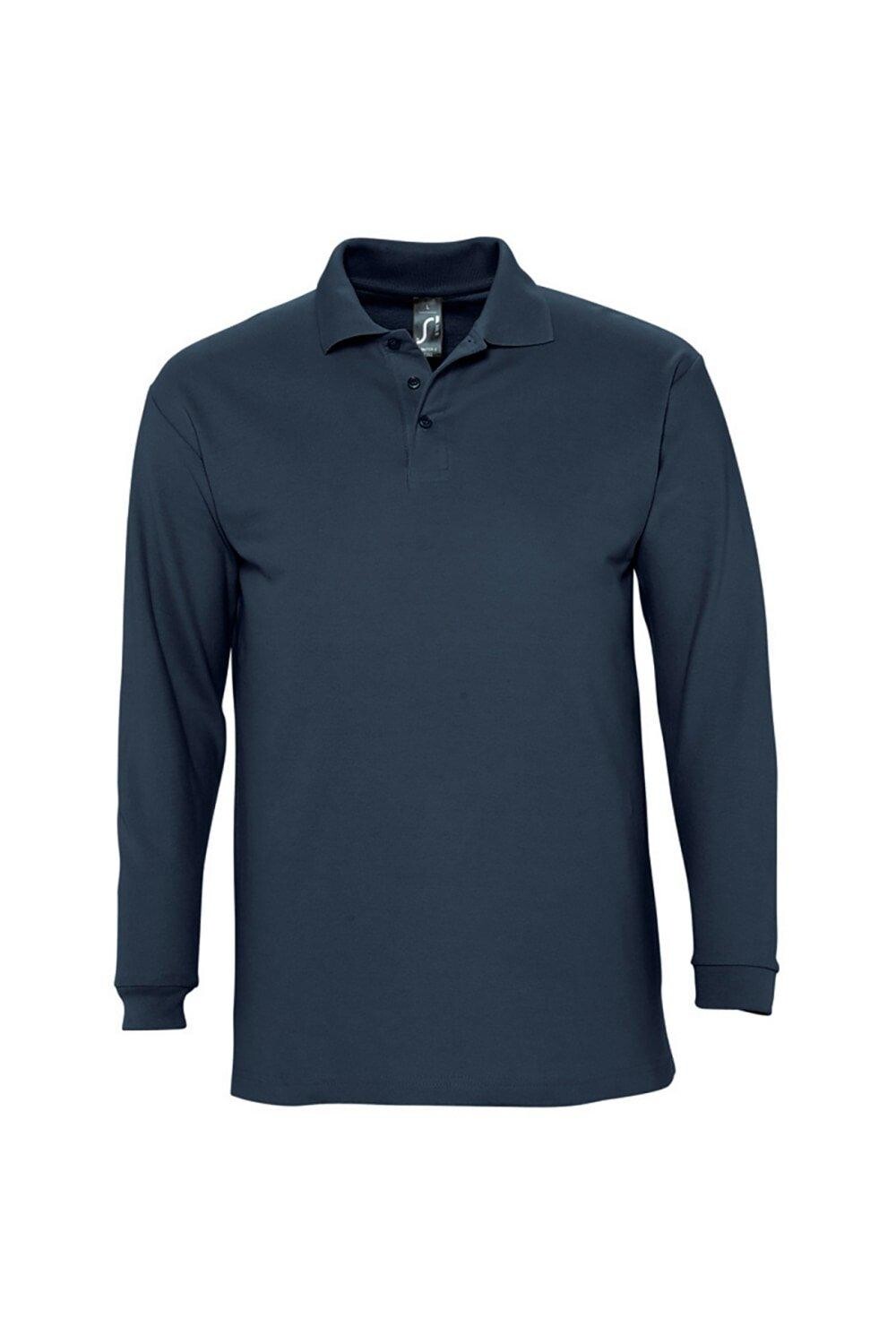 Рубашка поло из хлопка пике с длинными рукавами Winter II SOL'S, темно-синий