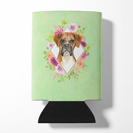 Carolines Treasures CK4415CC Boxer Green Flowers Can or Bottle Hugger Can Hugger multicolor