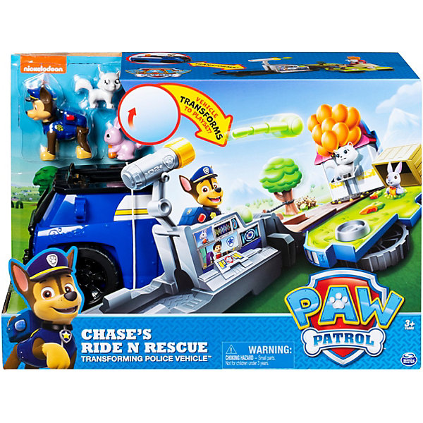 Игра-трансформер. Патрульная машина Гончика раскладывается в игровую площадку с тремя сюжетами. Чейзу нужно спасти кошечку с дерева, стреляя по шарикам из пушки. Затем поднять ящик, где застрял зайчик. И, наконец, сдвинуть упавшее дерево, под которым находится семья сусликов. Теперь площадку можно вновь сложить и отправиться на машине в следующее приключение. Набор детализирован, выполнен из качественных материалов.