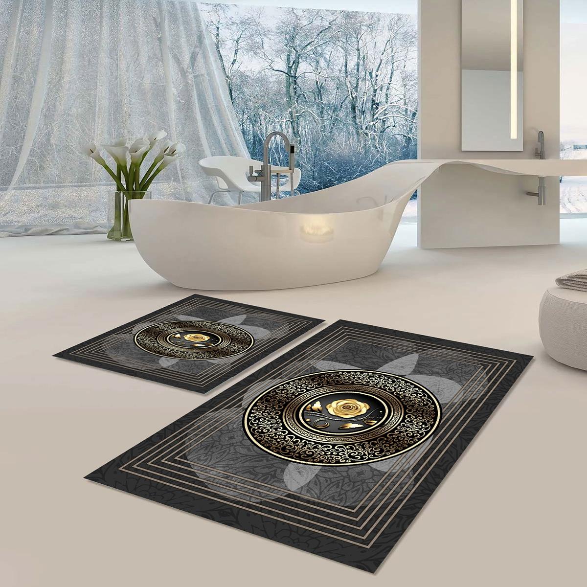Машинная стирка коврика для ванной Нескользящее основание Моющийся набор из 2 ковриков для ванной, устойчивый к пыли и пятнам B1079 60 x 100 & 40 x 60 белый