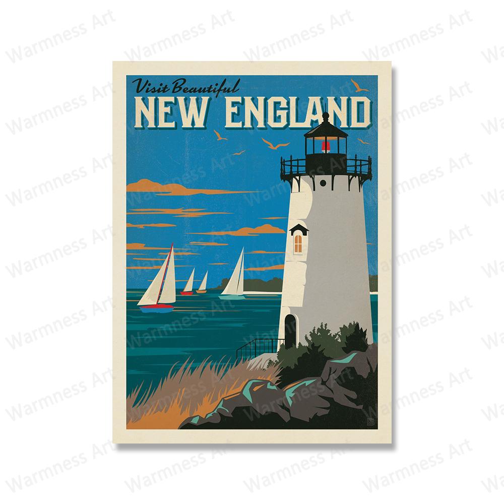 Маяк Морская волна Пейзаж Холст Плакаты Настенная живопись Печать Англия Внешние отмели Остров Сент-Саймонс Живопись Картины Домашний декор Без рамки 21*30cm No Frame