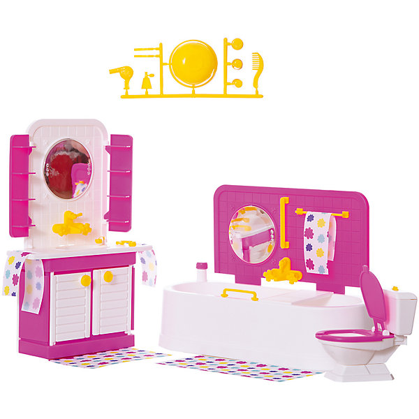 Мебель для куклы Огонёк "Зефир" Ванная комната, Розовый/белый, Мебель для куклы Огонёк "Зефир" Ванная комната