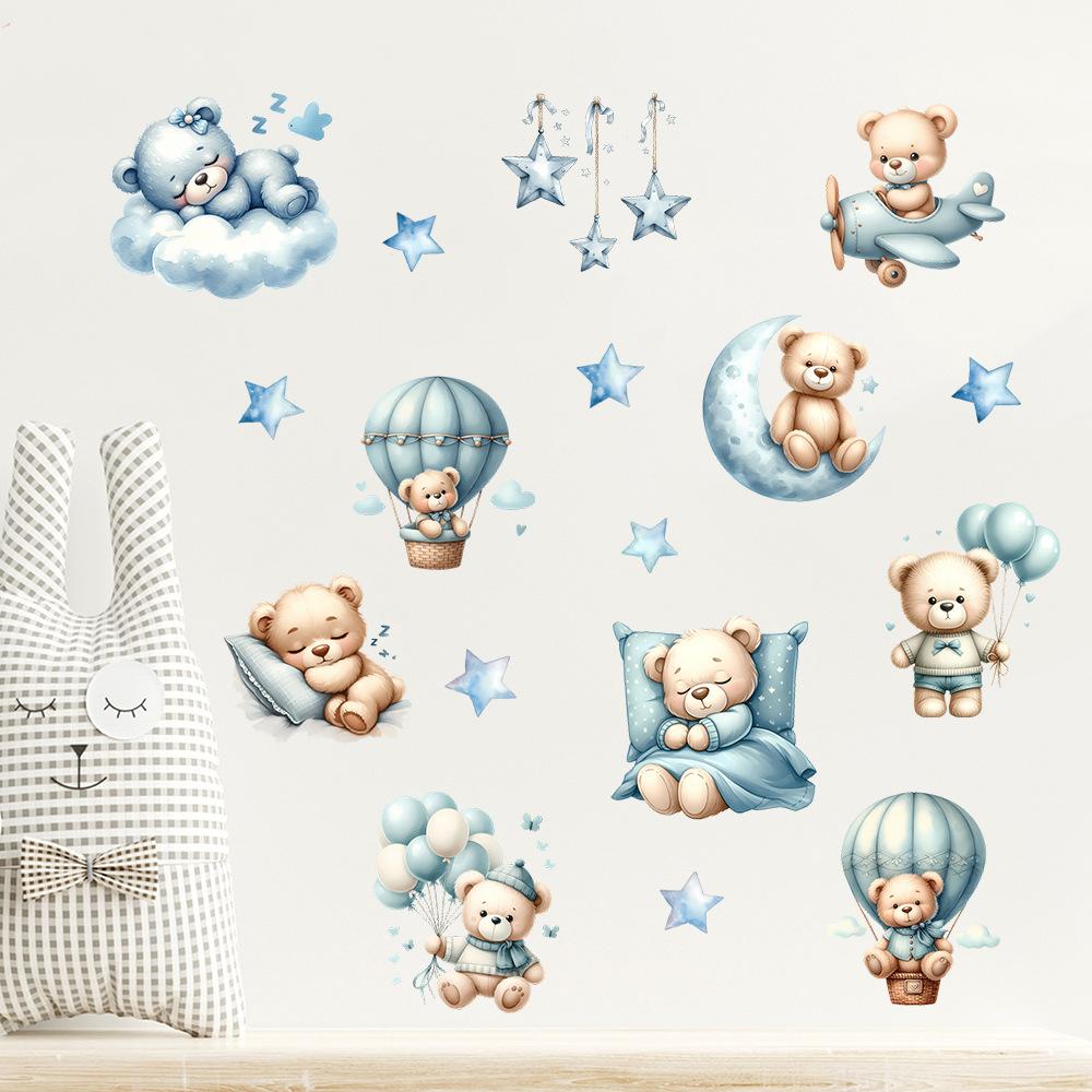 Медведь Спокойной ночи Наклейка на стену Воздушный шар Самоклеящаяся Водонепроницаемая Декор для детской комнаты Настенная живопись для гостиной Спальни 30x90CMx2 разноцветный