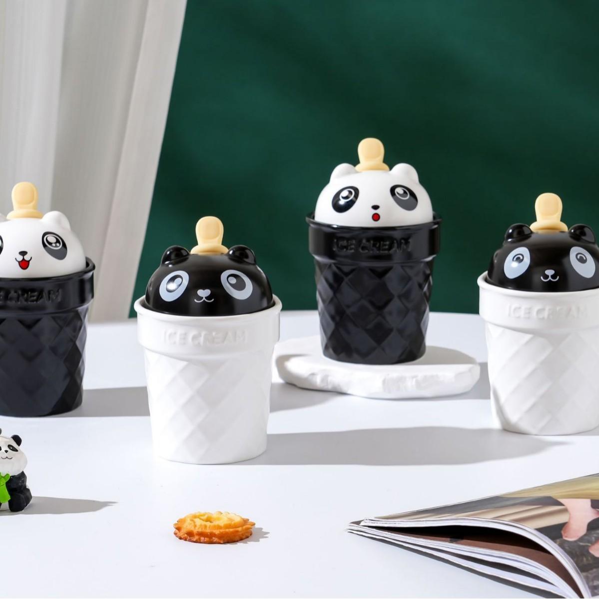 Медведь с крышкой ложка мультфильм милый набор керамическая чашка мороженое креативная индивидуальная кружка домашняя пара чашка 320ML