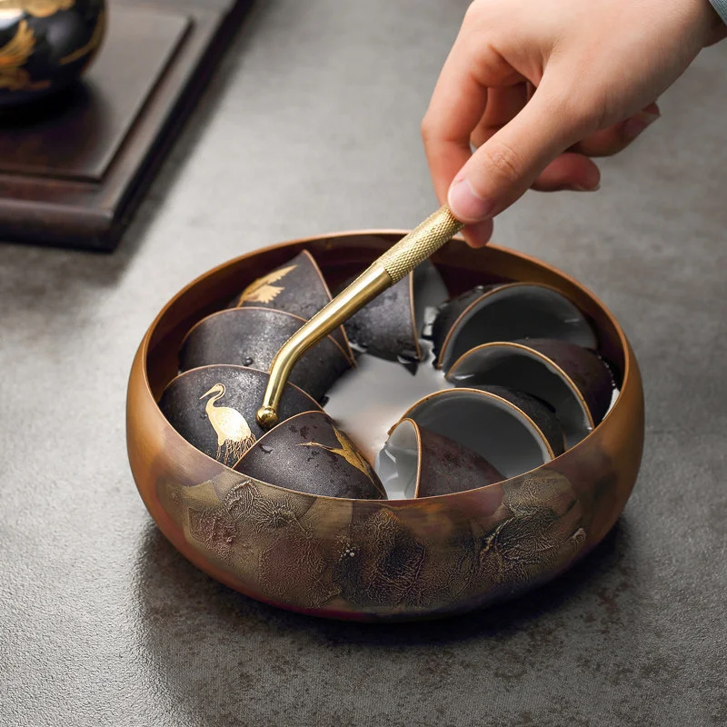 Медная Серебряная чайная ручная чашка для мытья инкрустированная серебряной водой Meng японский дзен чайный набор аксессуары для чайной цер...