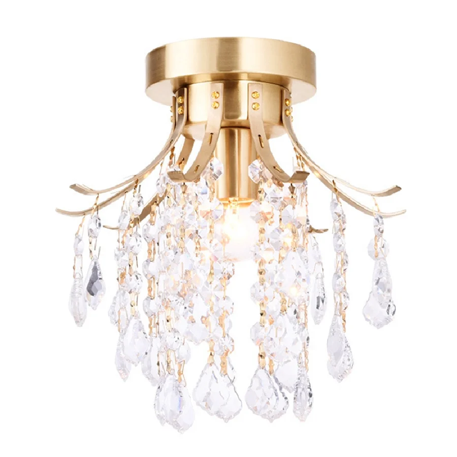 Медная Хрустальная потолочная лампа LukLoy, медная лампа с основанием для коридора, маленькая потолочная лампа в европейском стиле для фойе, г...