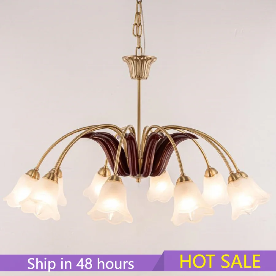 Медная американская пасторальная Простая Современная ретро-Люстра для гостиной, спальни, столовой, Цветочная французская люстра