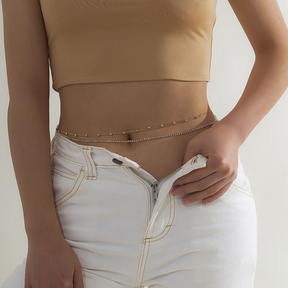 Медная цепочка Винтажная Эстетичная цепочка живота Стразы Тонкие бусины Звено Цепочка Тела Панк Бич