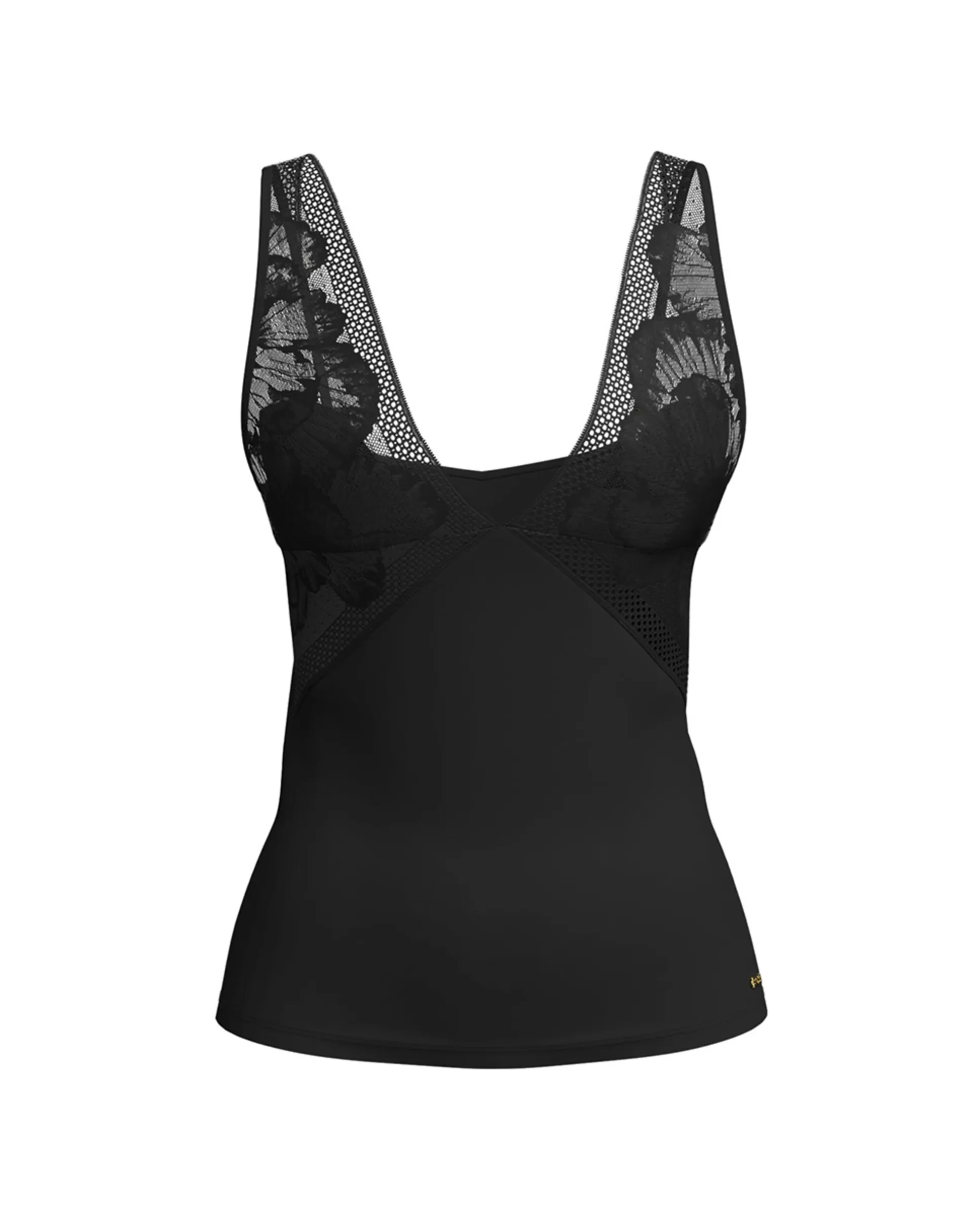 Топ на бретелях с V-образным вырезом и кружевной отделкой черного цвета Boss, черный