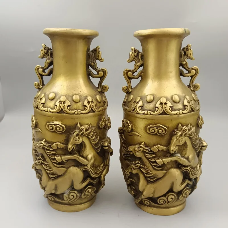 Медные орнаменты из коллекции античной бронзы, рельефная Медная Ваза с коньями для успеха, Пара украшений для дома, Подарочные поделки