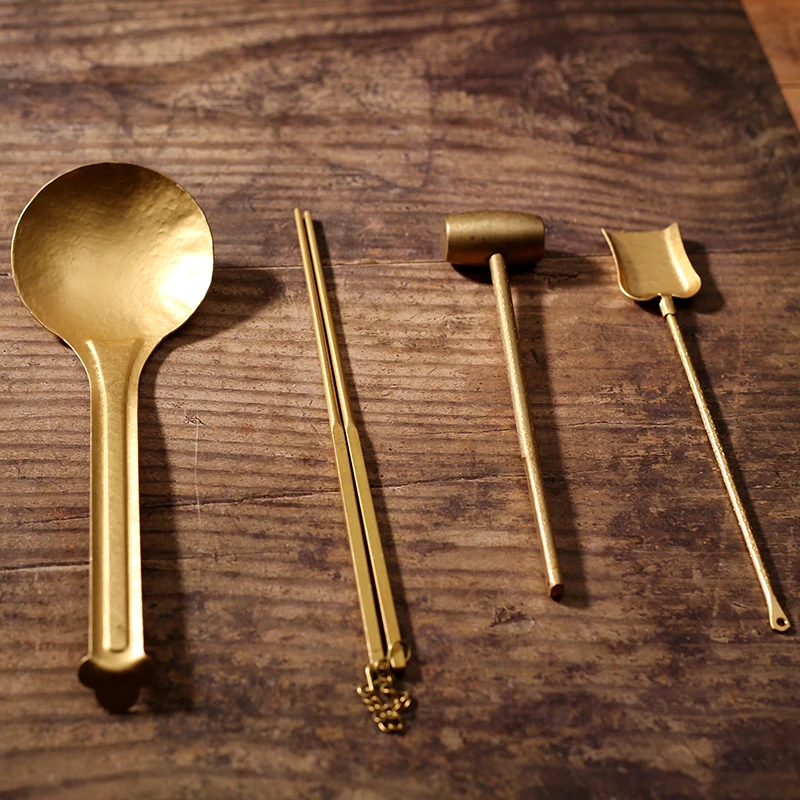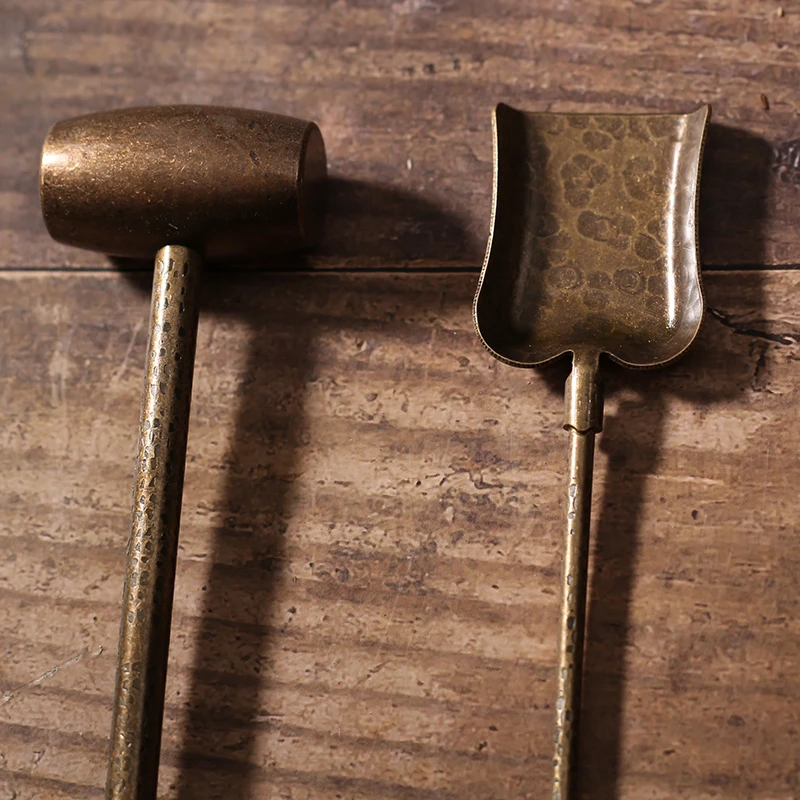 Медные палочки для еды ручной работы, старые медные благовония, зажим для дороги, лопатка для угля, медные щипцы для огня, медный молоток, чайная горелка под старину