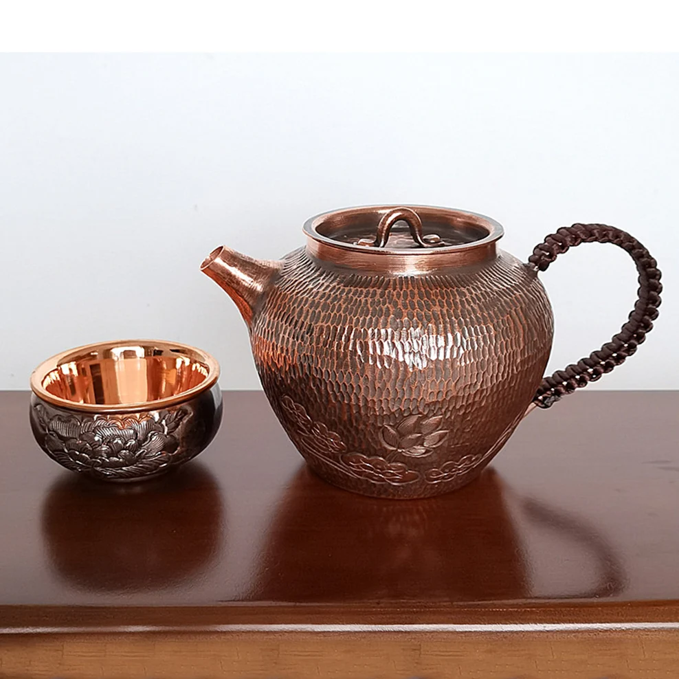 Медный чайник «Все в одном», чайник ручной работы из чистой меди объемом 400 мл, маленький медный чайник для заваривания чая в кружке, чайник с молотком в стиле ретро для кипящей воды