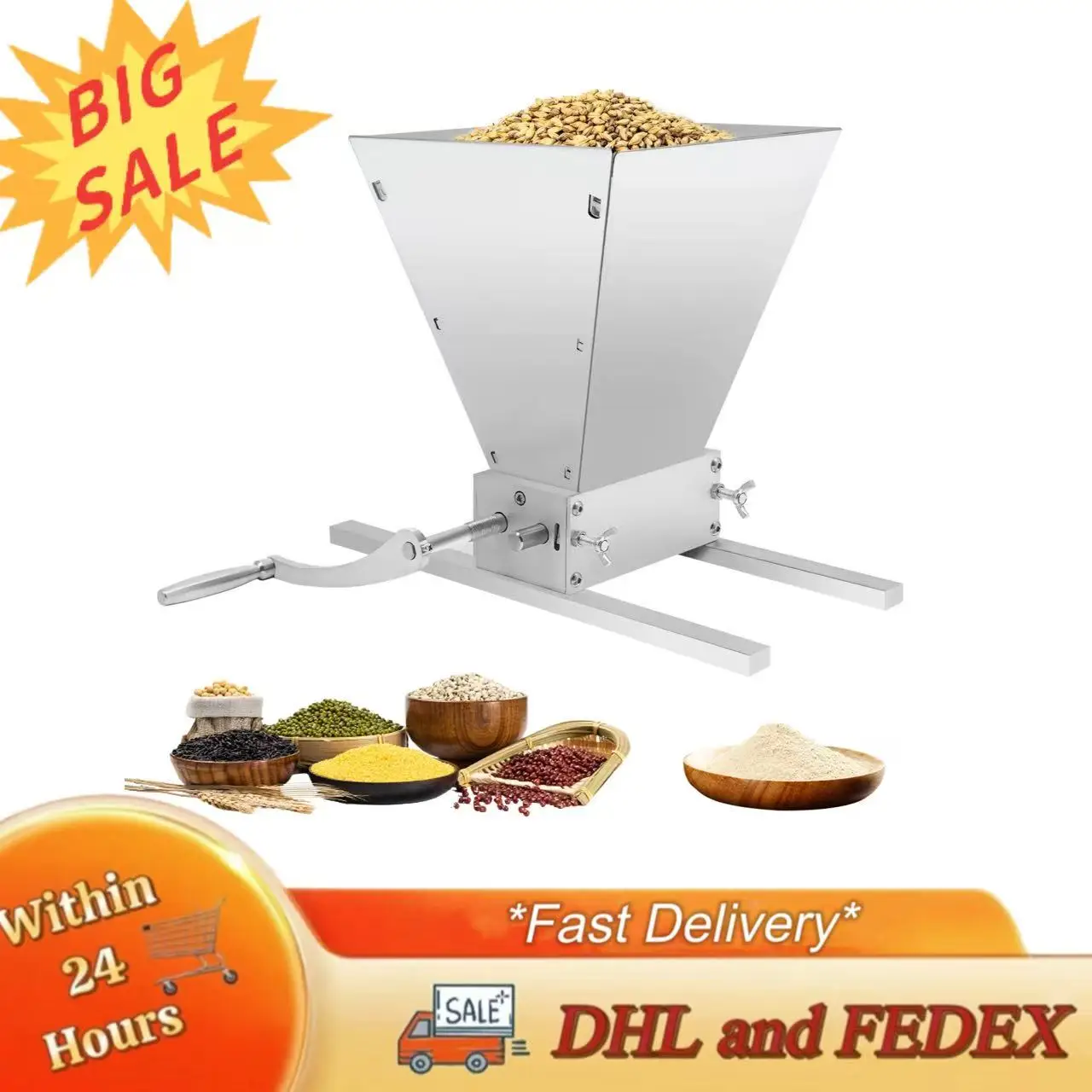 Мельница для зерна 4 л, регулируемый роликовый зазор, 1,06 галлона, большая емкость, 2 метода шлифования, мельница, фрезерная машина для ячменя, зерна пшеницы