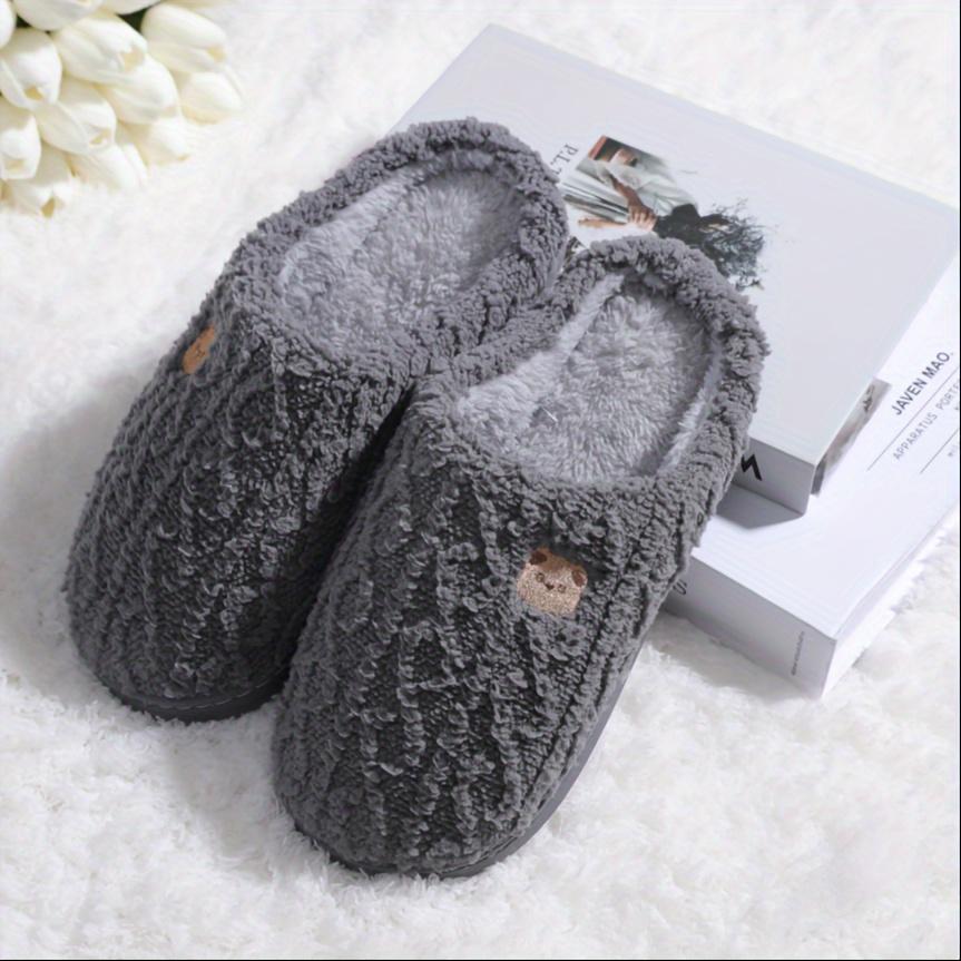 Меньший размер, симпатичные плюшевые зимние тапочки с рисунком медведя, уютные и теплые туфли без застежек на плоской подошве, удобные домашние тапочки для спальни 42-43 серый