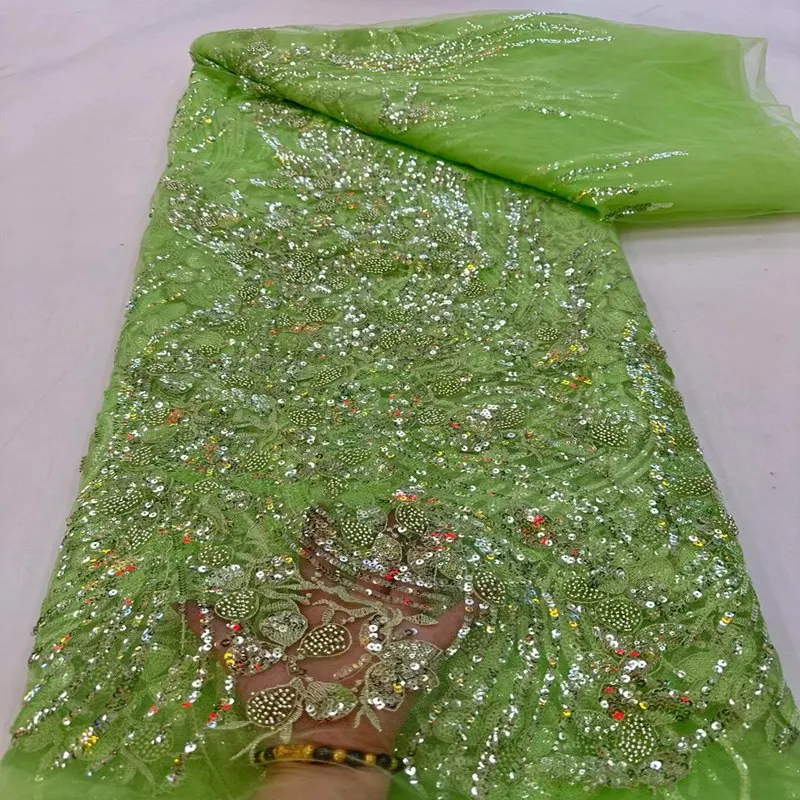 Luxury French Lace Fabric Handmade Embroidered Beaded Tulle Lace Fabric With Sequins 5 Yards TS2503