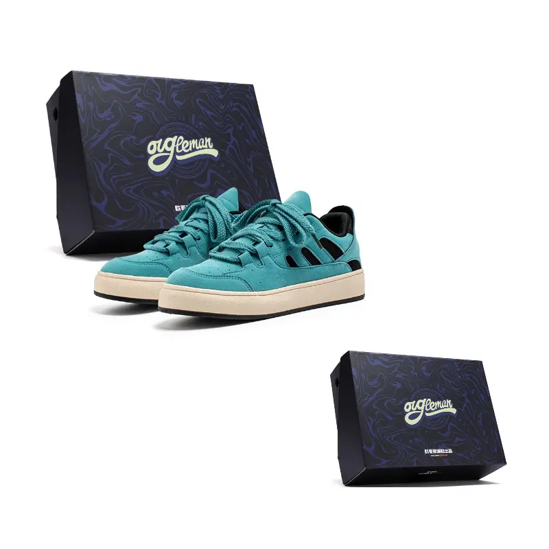 OUGLEMEN Скользостойкие амортизирующие износостойкие легкие низкие скейтборд кроссовки мужские синие (коробка), цвет Blue (Box)