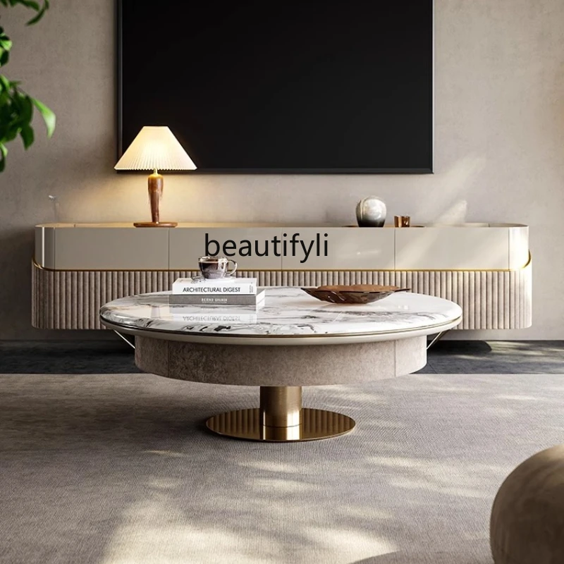 Light luxury style, TV cabinet combination living room, marble round coffee table