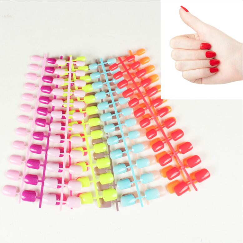 24pcs Colorful Short Square Head False Nail Finger Nail Tips Stiletto Coffin Fake Nails ABS Artificial Tips Art Deco