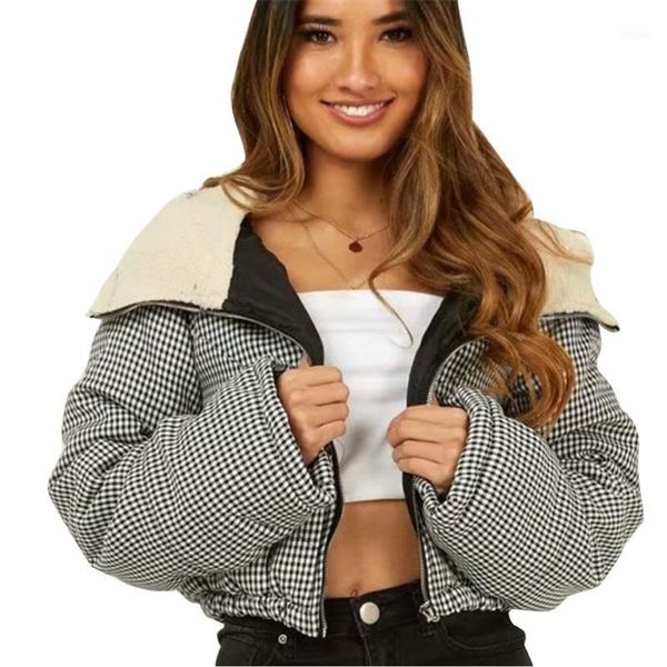 ins women's fashion europe and america style houndstooth short hooded jackets women's winter cotton coats1, Black