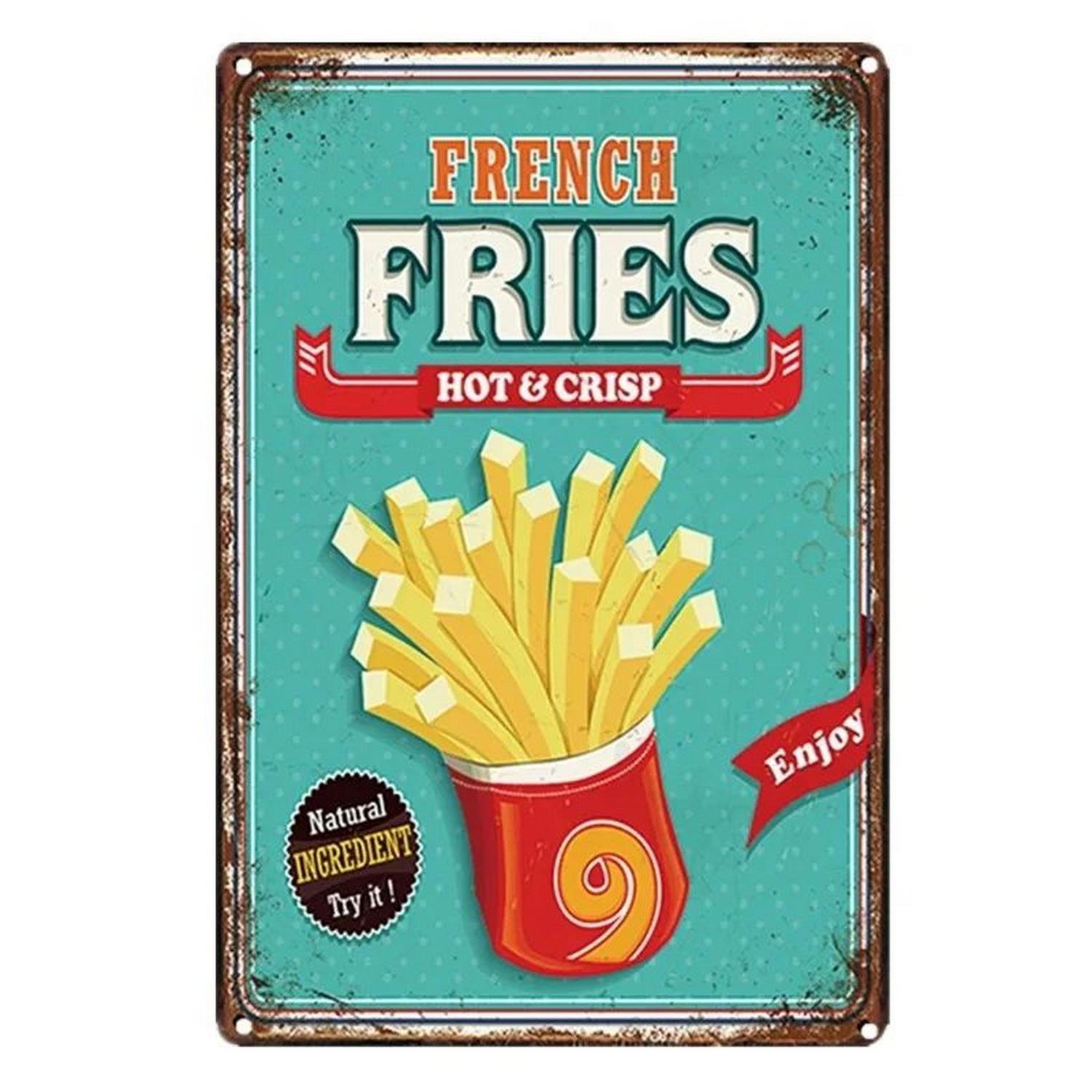 Металлическая табличка Жестяные знаки Ручная работа Гамбургер Картофель фри Настенное украшение Винтажные художественные постеры Жестяная картина для мужской пещеры Дом Кафе Сад Клуб Бар 20X30CM