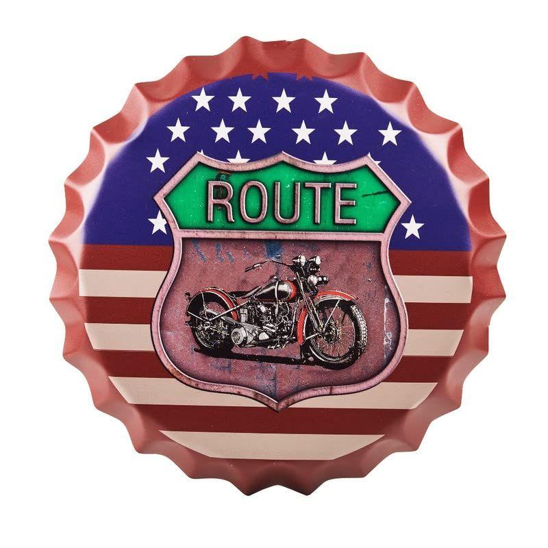 Металлические Настенные Таблички с Крышками от Бутылок - 14X14 Дюймов – Route 66 Флаг США | Металлическая Настенная Подвеска Крышка от Бутылки для Дома, Фермерского Дома, Бара и Кафе