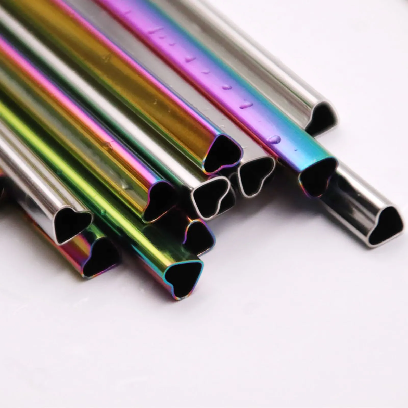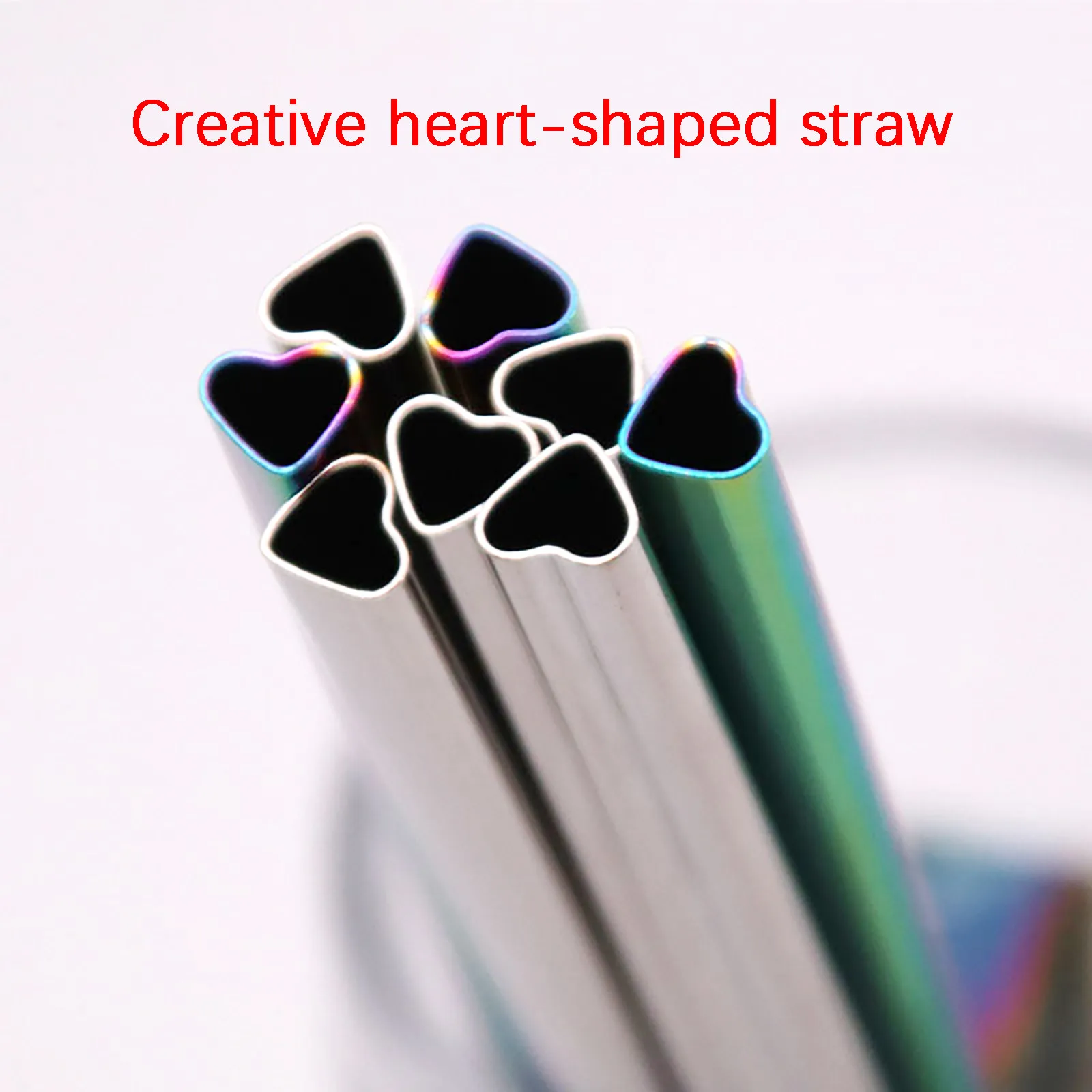 Металлические соломинки для напитков из нержавеющей стали в форме сердца, многоразовые, полезные, прямые, с чистящей щеткой для горячих и хо...