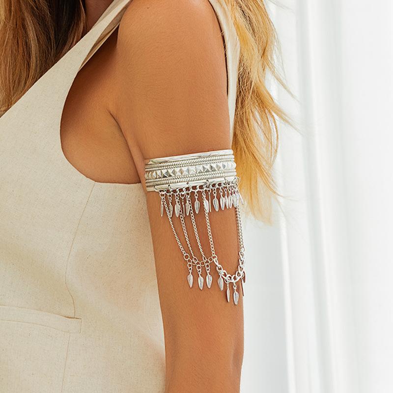 Металлические цепочки в западном ковбойском стиле с листьями, длинные браслеты с кисточками, женские винтажные браслеты в стиле панк, серебряные, золотые, ювелирные изделия для тела, аксессуары