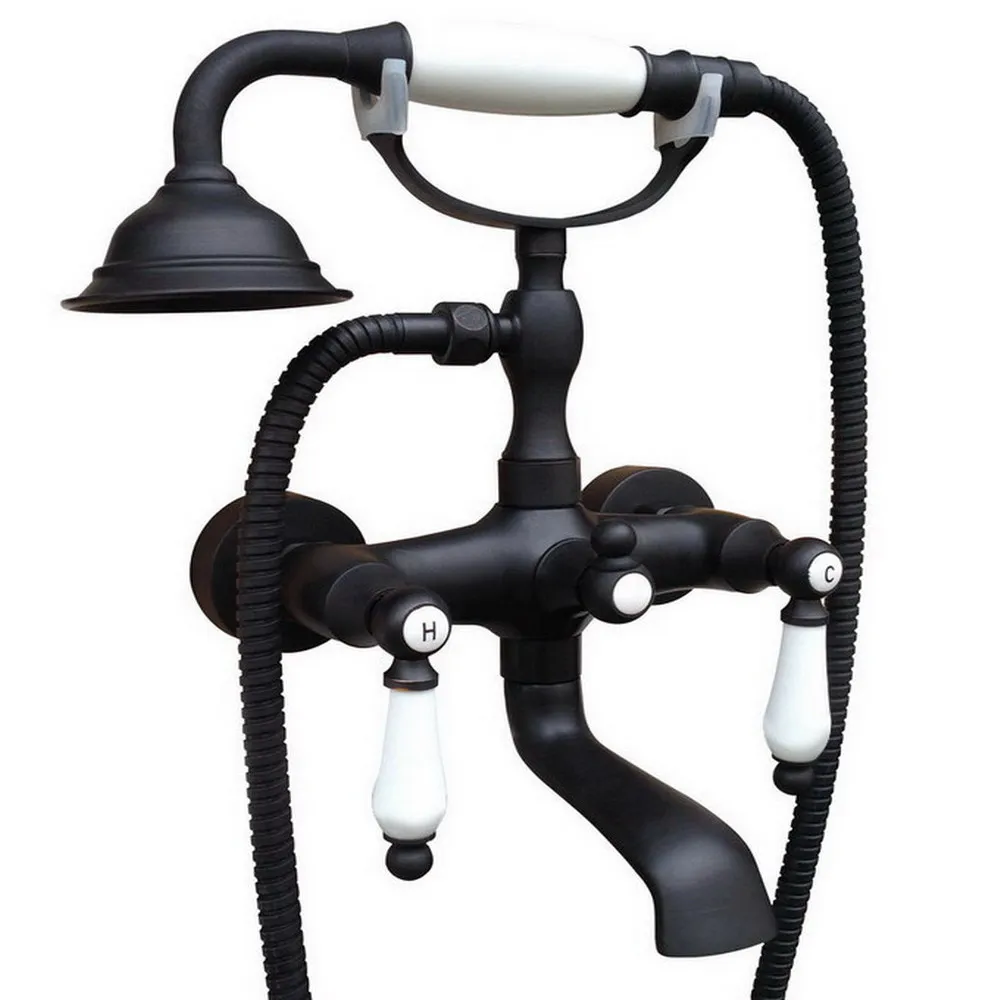 Black Oil Rubbed Brass Wall Mounted Clawfoot Bathtub Faucet Mixer Water Tap Set Handshower Double Handles atf613