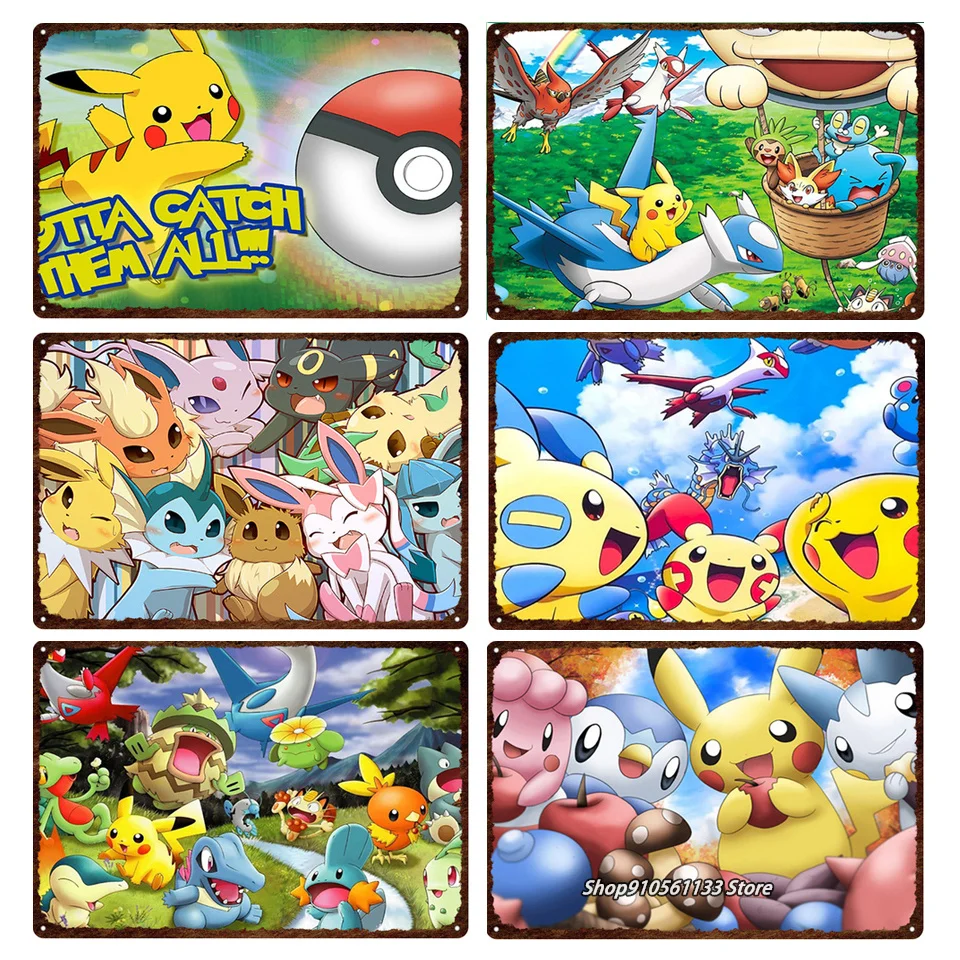 Металлический аниме постер Пикачу в стиле ретро мультяшный гараж человек пещера бар Оловянная живопись металлическая пластина Печать Проз...