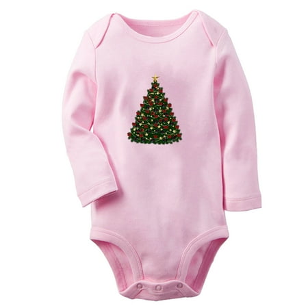 Babies Nature Fir Tree Pattern Rompers Newborn Baby Unisex Bodysuits Infant Jumpsuits Toddler 0-12 Months Kids Long Sleeves Oufits (Pink 0-6 Months)