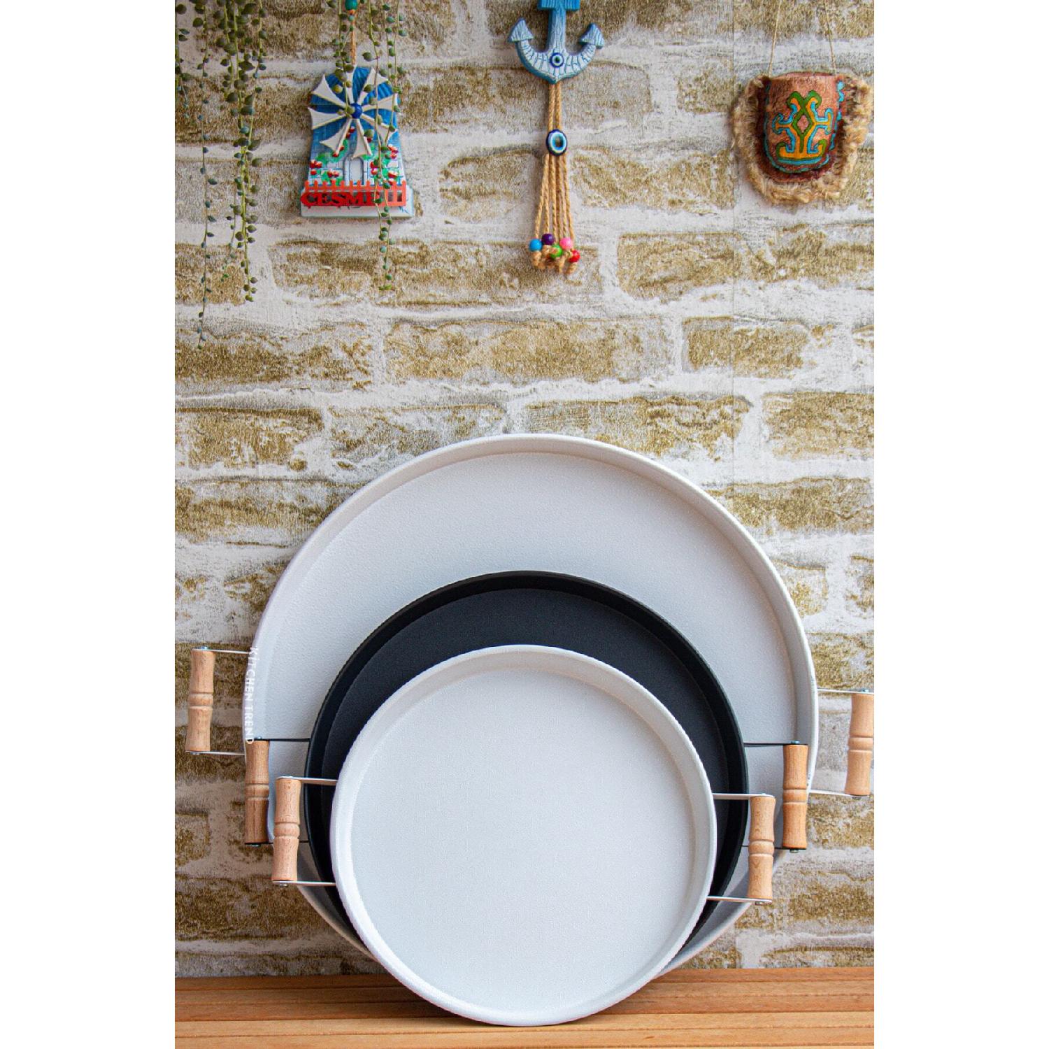 Металлический поднос из 3 предметов: 45 белых, 37 черных, 30 белых с деревянными ручками. Поднос для чая. Набор презентационных подносов.
