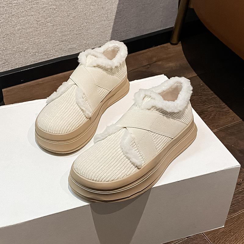 Меховая обувь с перекрестными ремешками, женская обувь, верхняя одежда, новая осенне-зимняя бархатная теплая хлопковая обувь, одинарные туфли на толстой подошве