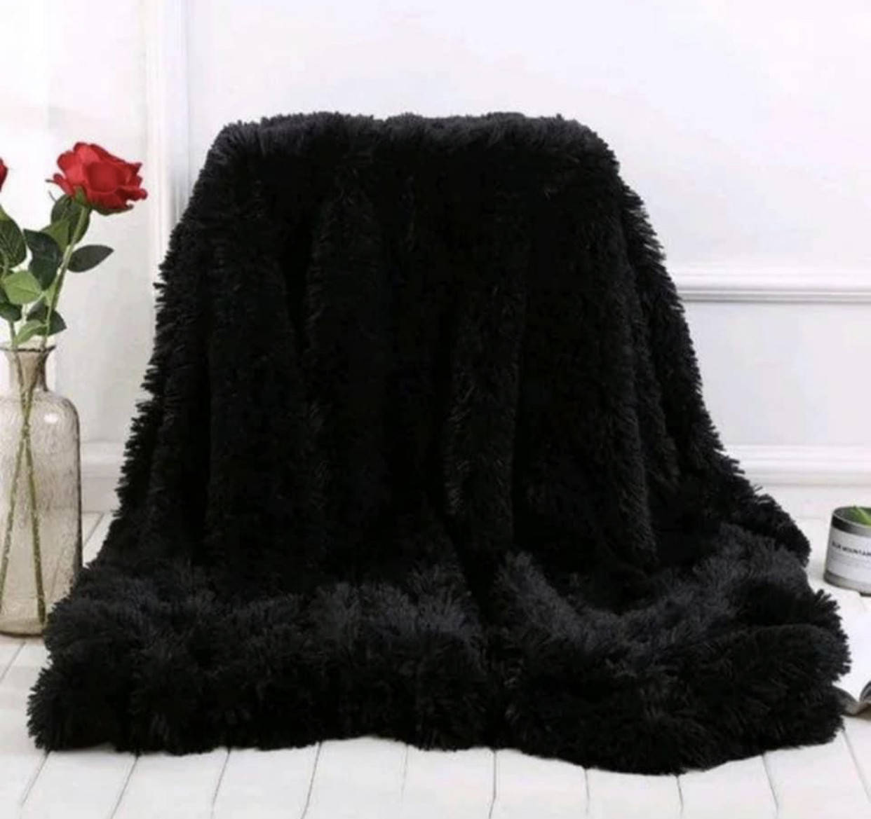 Меховое покрывало Травка евро черного цвета/Большое черное покрывало220х240, Разные цвета